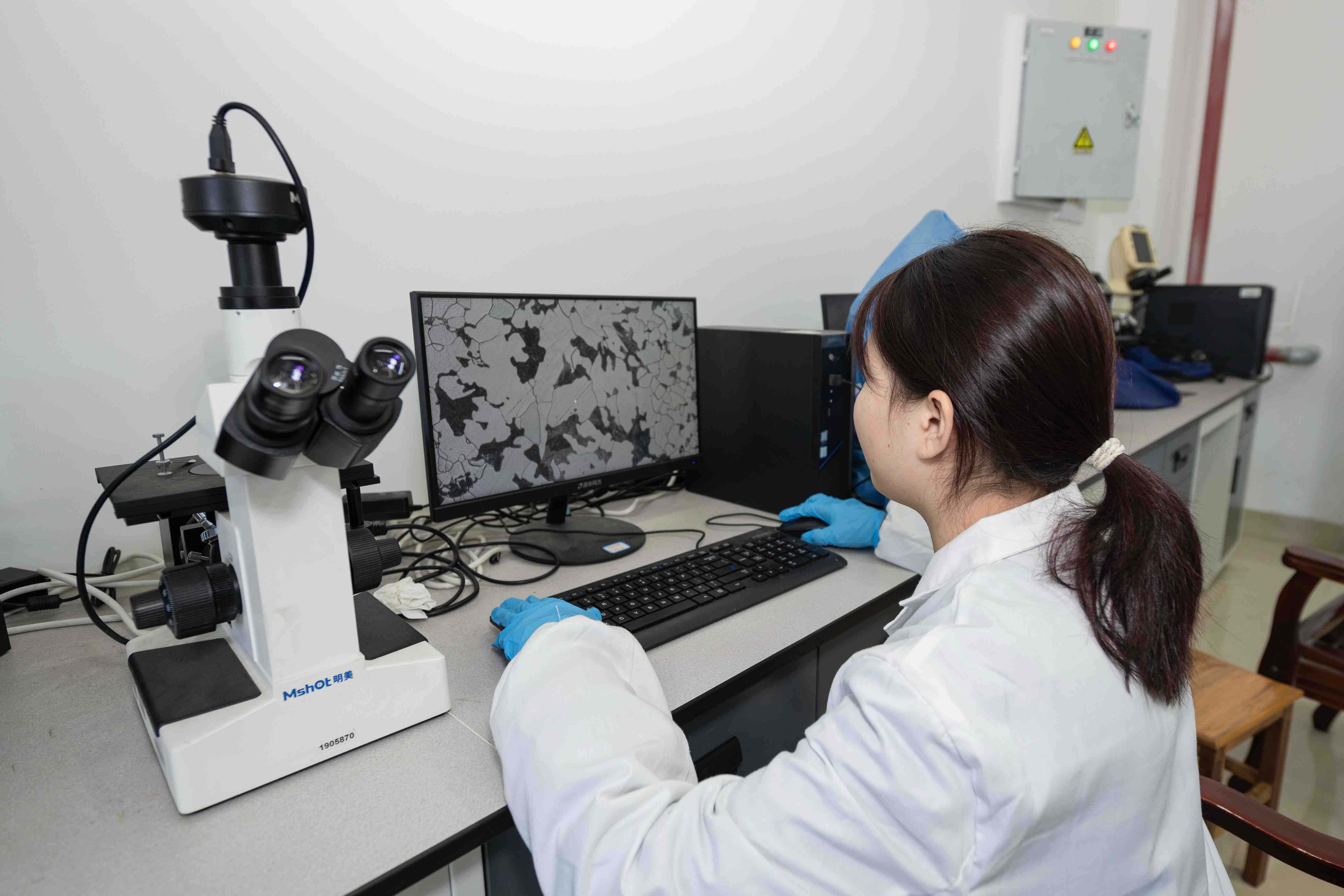 图 曾文借助显微设备,分析刀具精度细节