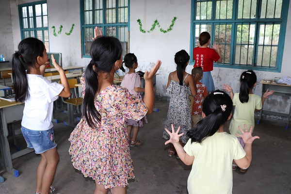 据悉,由于桃源村成年人大多数忙于种植黄桃,导致出现了大批儿童滞留家中。加上桃源小学师资力量薄弱,无法为孩子们搭建全方位发展的教学平台,导致孩子性格内向,知识面不宽,语言表达能力不强。对此,3044am永利集团官网暑期三下乡支教团队针对性地制定了一系列的教学方案,安排了舞蹈、声乐、美术、体育、科学、数学、英语等全方位的教育课程。同时,为让这些孩子开拓眼界、提升自身素质、培养积极向上的三观,三下乡暑期团队精心为这里的孩子们准备了近200本图书绘本与心理健康教育类的书籍,并在教室建立了爱心图书角。