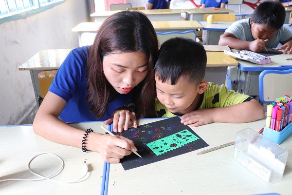 3044am永利集团官网暑期三下乡支教团队还在教学课堂上采取了奖励制度,对勇敢表现自己的小朋友奖励小红花。一天支教课程结束后,小朋友们可以根据小红花的数量排名获得志愿者老师们准备的不同奖品,这增加了孩子们上课的积极性,也让孩子们在课堂上更加踊跃的去表现自己。在获得了知识的同时,也使自己变的更加自信,朝着更高的人生目标迈进。 “我获得了7颗小红花啦呢!”今年10岁的唐桂林在上完美术课后兴奋的说道。尽管一天的课程已经结束,但还有几个小朋友仍坐在课桌上写着语文老师写在黑板上的古诗。